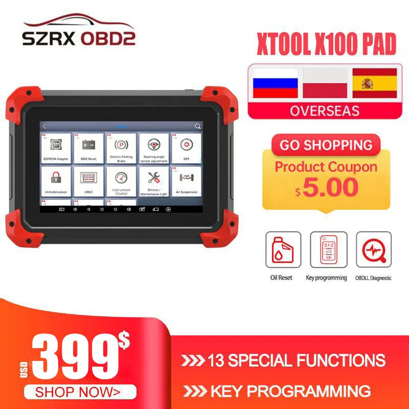 X-100 коврик является первым планшет ключевой программист во всем мире! Он не только предоставляет клиентам Профессиональный ключевой программирующий, но в то же время наиболее необходимы специальные функции (балансировки колес) для мастерских. X-100 коврик является планшетной ветвью с новейшими технологиями для выполнения ключевых программ, регулировки пробега, перезагрузка масла, аварийный ремень, сброса давления, аварийный сброс давления в шинах, сброс EPB, сброс дроссельной заслонки, Сброс DPF, сброс батареи, Калибровка угла поворота руля и OBD-II Диагностика двигателя.