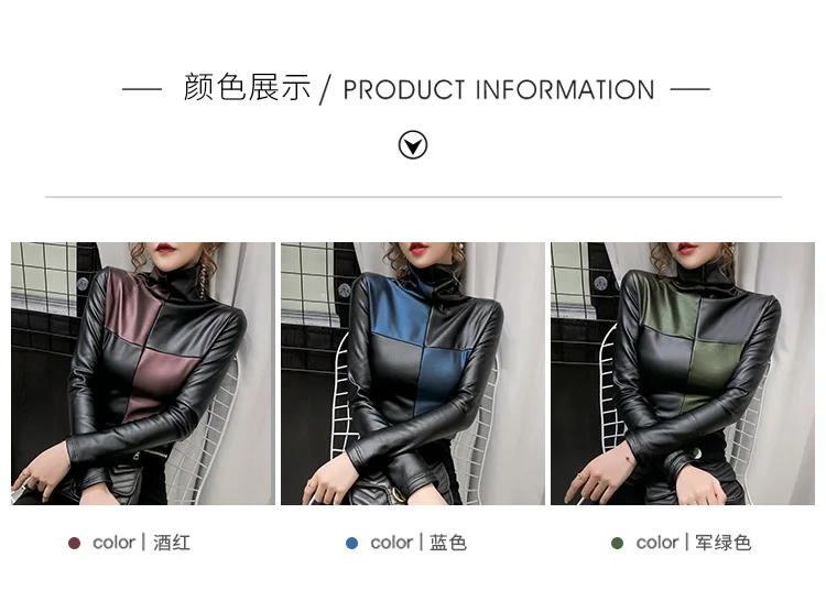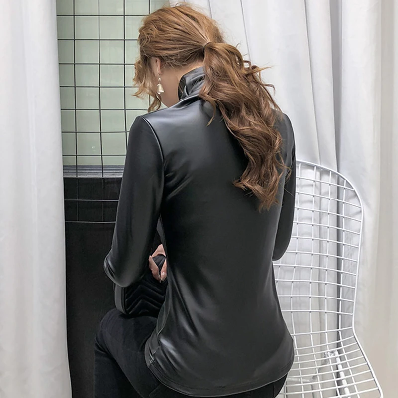 Повседневная цветная футболка из искусственной кожи, женская уличная водолазка с длинными рукавами, облегающая ФЛИСОВАЯ ФУТБОЛКА T07922B на осень