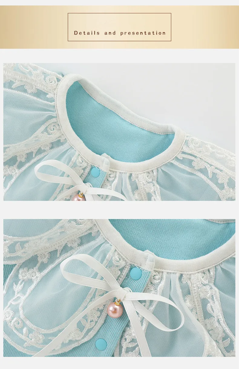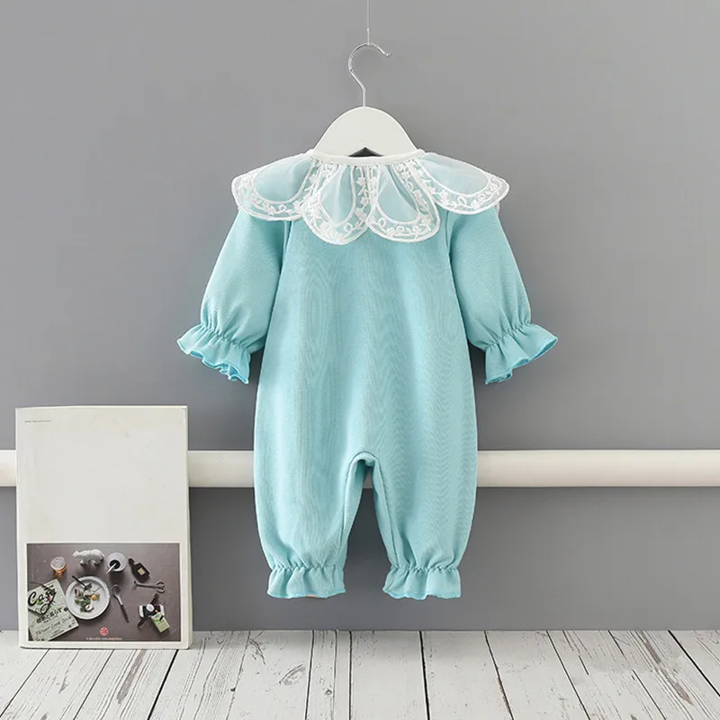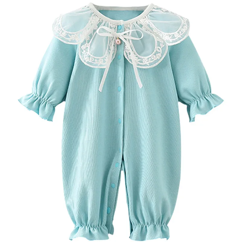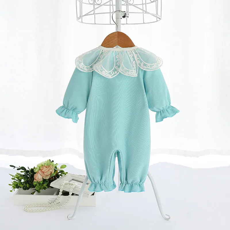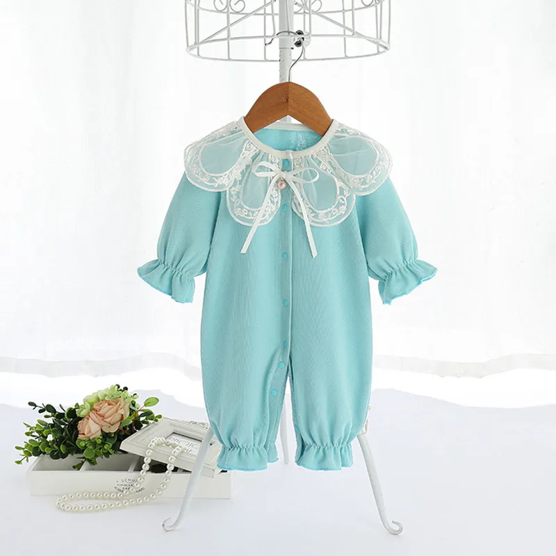 Комбинезон с кружевным воротником для новорожденных девочек, комбинезон для маленьких девочек, костюм, детская одежда, синий, От 0 до 2 лет