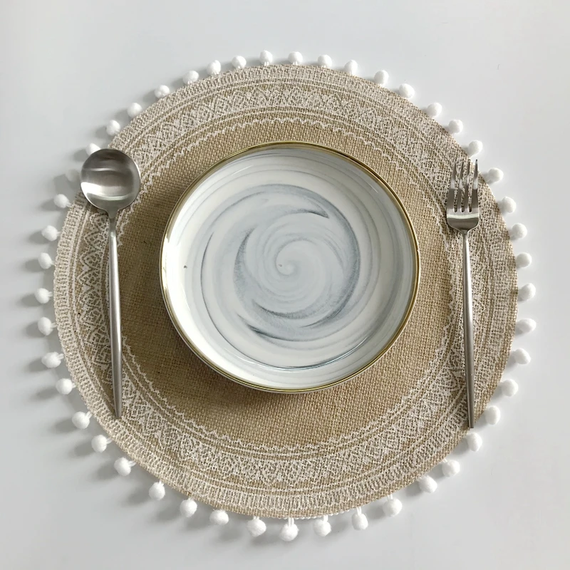 1 шт., теплоизоляционный коврик для обеденного стола, 38 см, круглая, с нежной вышивкой, нескользящая Подложка для десертов, коврики для кофейных чашек