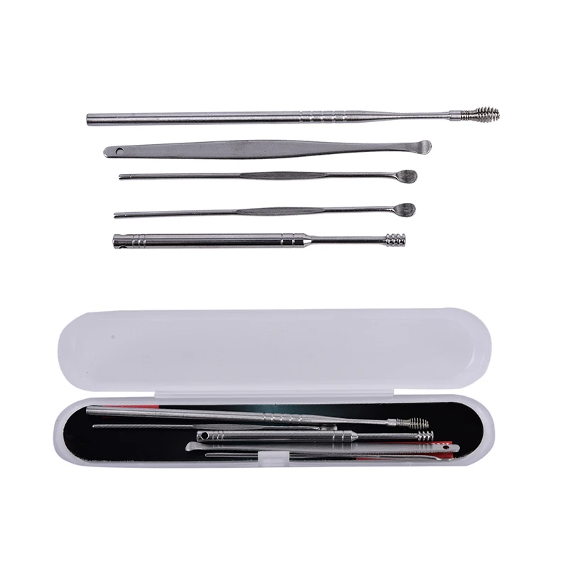 5 шт./лот, серебро, нержавеющая сталь, Earpick с PP коробкой, для удаления воска, Curette Cleaner, инструменты для ухода за здоровьем, выбор ушей