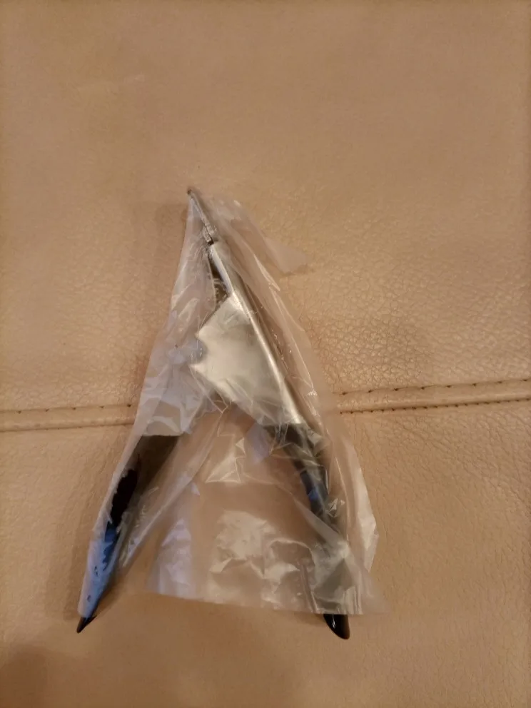 Понравились, как на фото ( брала с красной ручкой). сначала показалось что лезвие не будет резать, из-за того что косит немного. Но на практике все отлично прошло! С продавцом не общалась.
