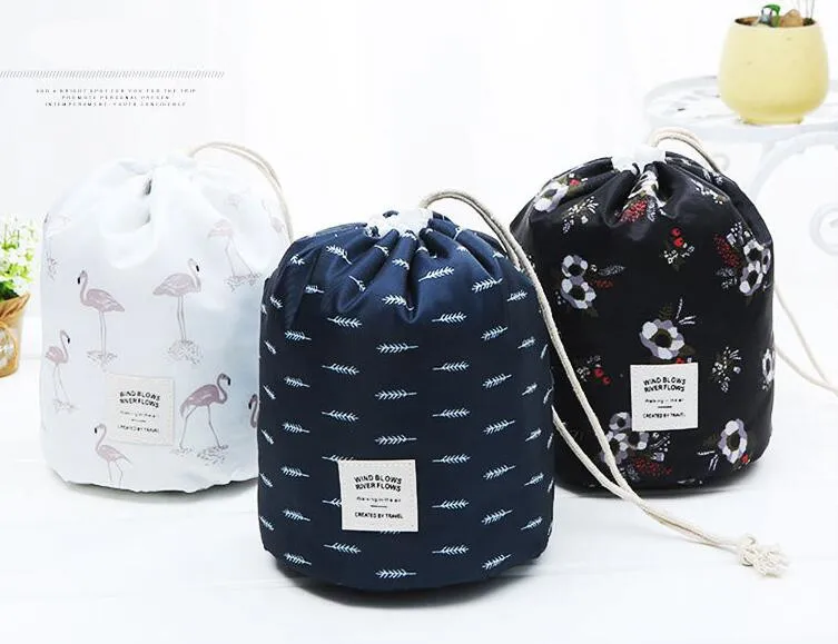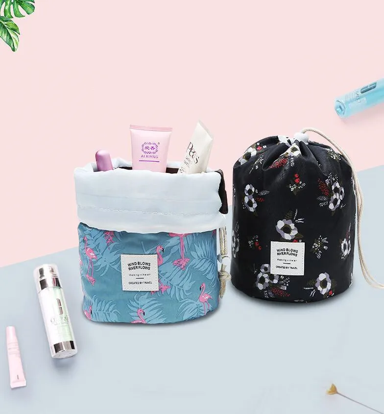 Косметичка на шнурках для женщин, цветной цилиндрический дорожный органайзер для косметики на шнурках, вместительный хранение туалетных принадлежностей для косметики