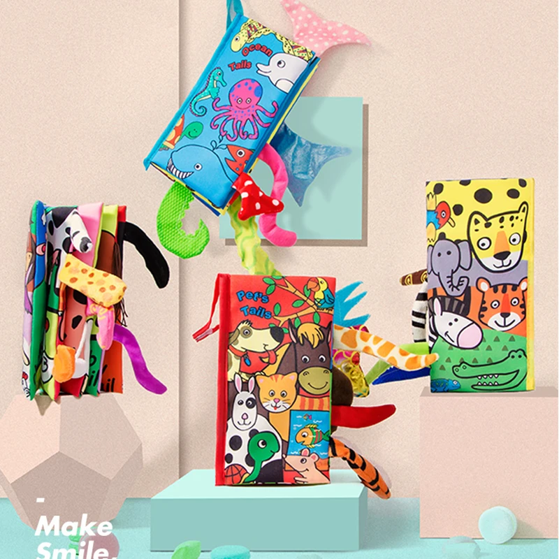 Хвостами животных детские книги 3D мягкий развитие тканевые книги тихий книги новорожденных Ранние обучающие игрушки для малышей, детей Погремушки игрушки