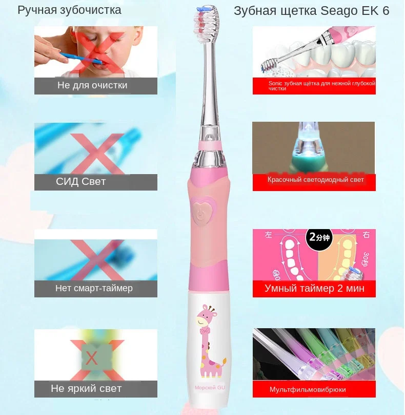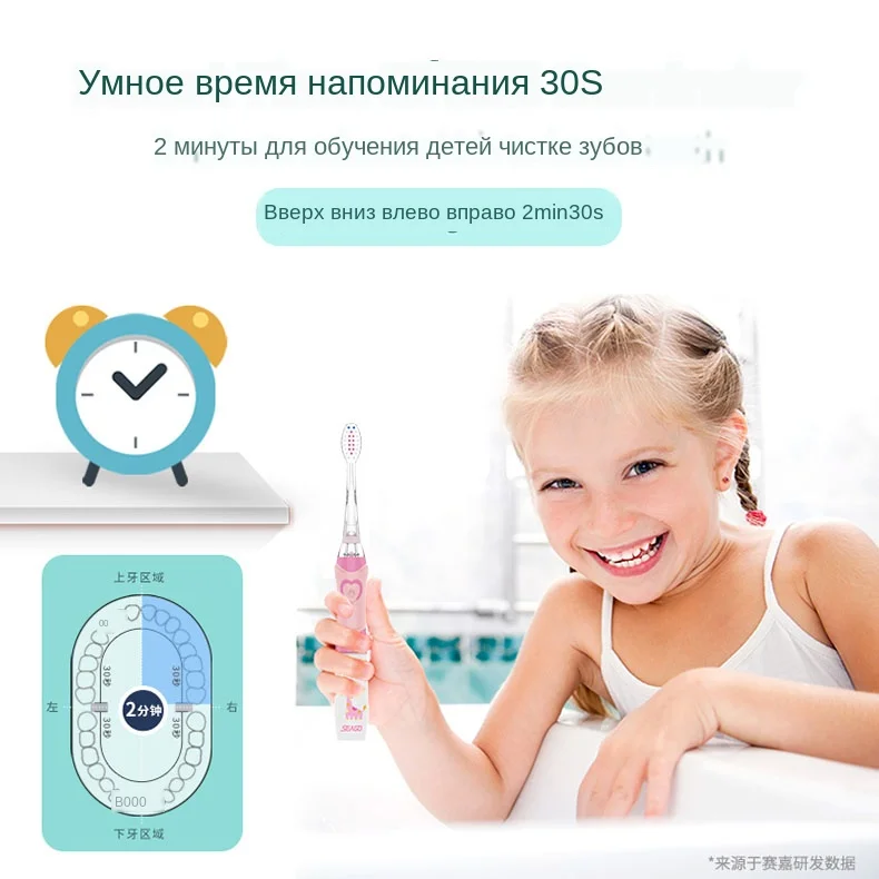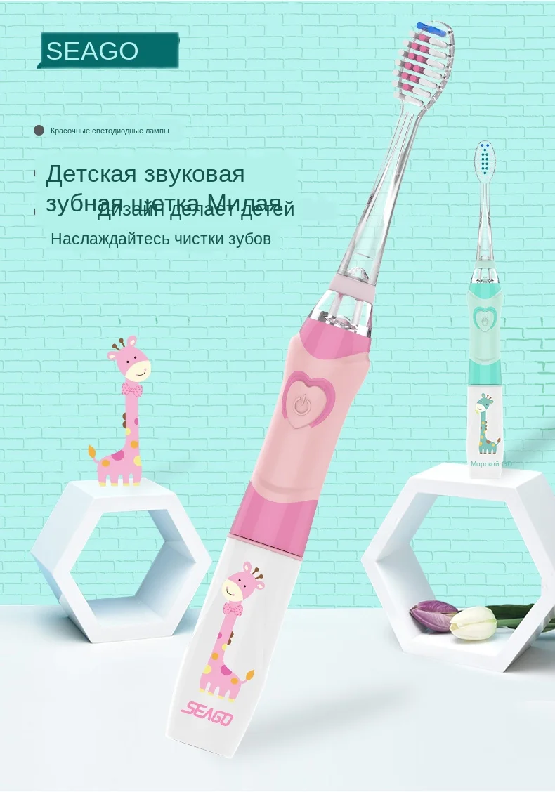 Seago Детская электрическая зубная щетка светодиодный светильник умные напоминания Сменные сопла батарея питания звуковая зубная щетка для 3 лет +