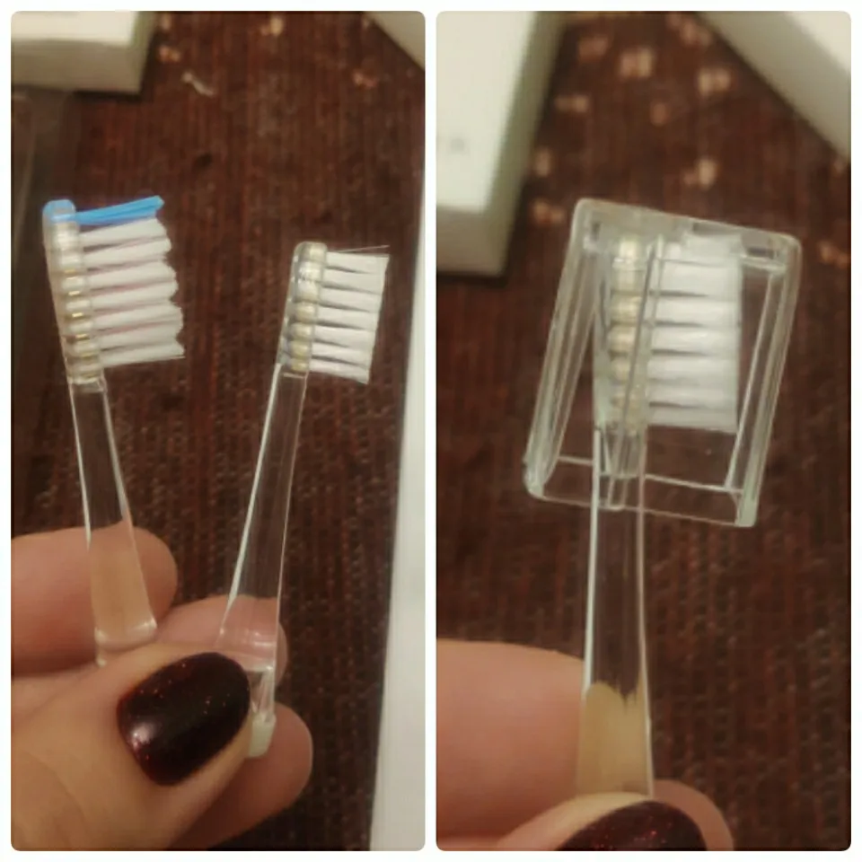 Коробка сильно помялась. Брала на подарок, поэтому не вскрывала. Сами пользуемся такими уже более двух лет, все нравиться, замечаний нет. И на подарки брала не одну, всем детям очень нравиться. Мамы довольны, и.к. Дети сами начинают чистить зубы))) да ещё и с удовольствием. Сменные насадки не маленькие, но не оригинал((