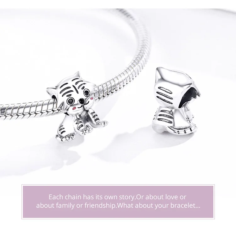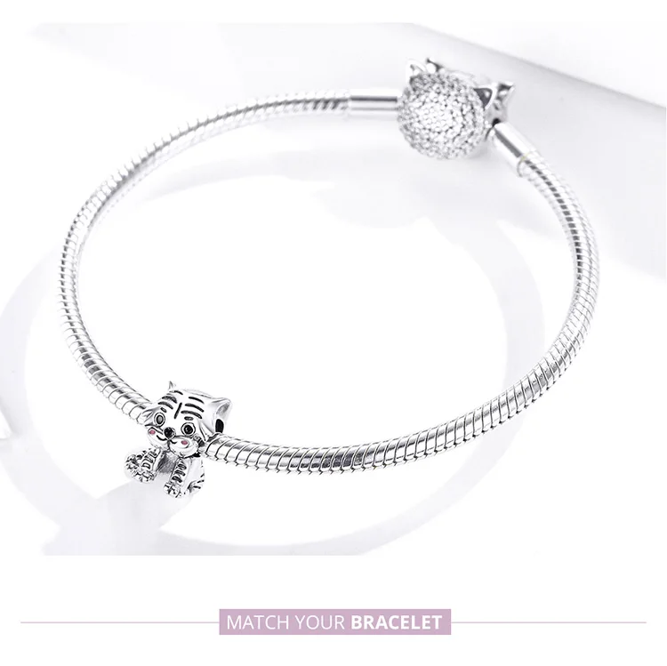 Бусины из стерлингового серебра 925 пробы с тигром для оригинального браслета, очаровательные ювелирные аксессуары SCC1573