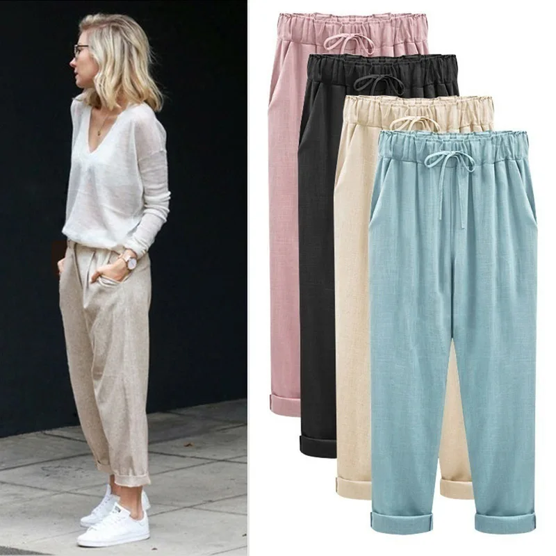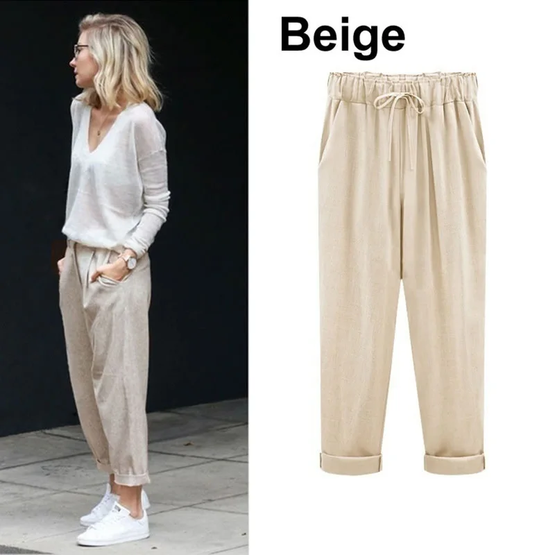 Женские брюки до щиколотки ZOGAA, повседневные Однотонные эластичные хлопково-льняные укороченные штаны в стиле хип-хоп, свободные шаровары, размера плюс
