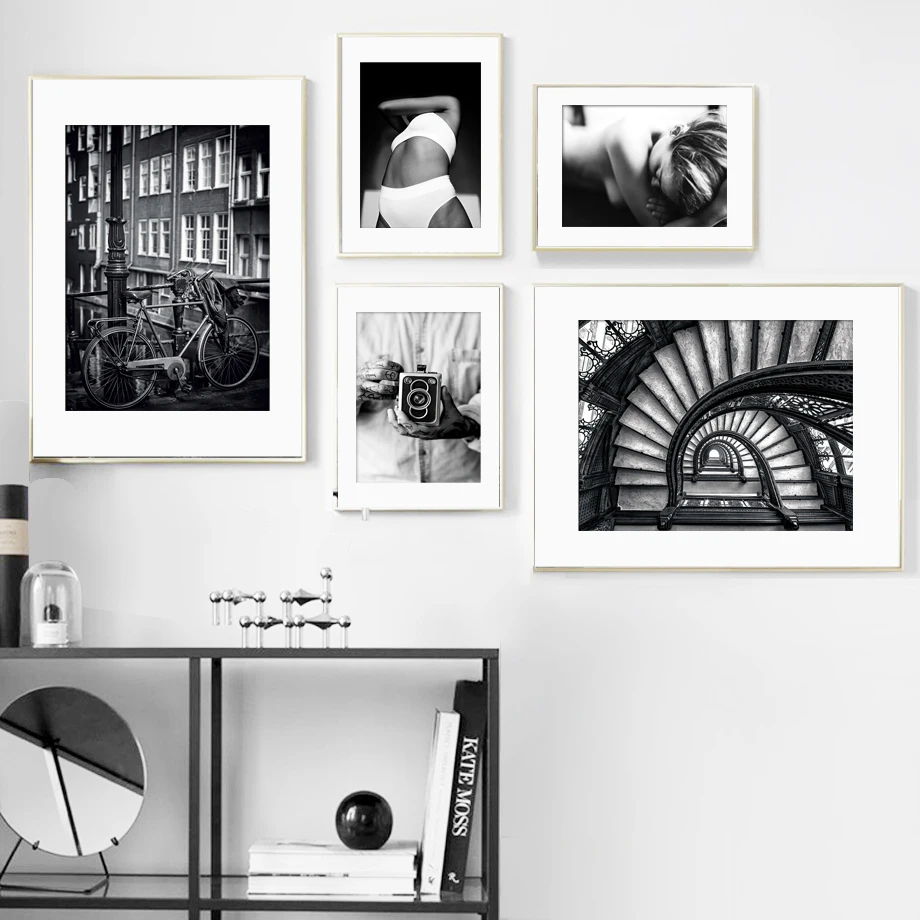 Настенная Картина на холсте Парижская улица девушка черная белая фото скандинавские плакаты и принты настенные картины для гостиной салонный Декор