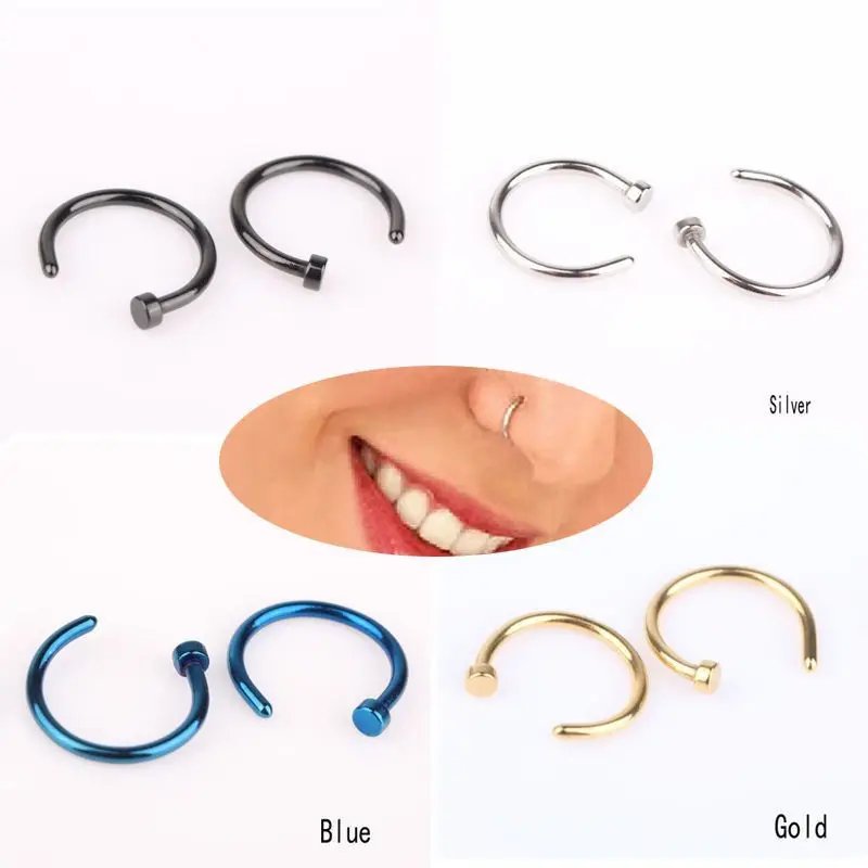 5 шт. 8 мм панк кольцо из нержавеющей стали с зажимом для носа кольцо для губ серьги Helix Rook Tragus искусственная перегородка пирсинг для тела ювелирные изделия