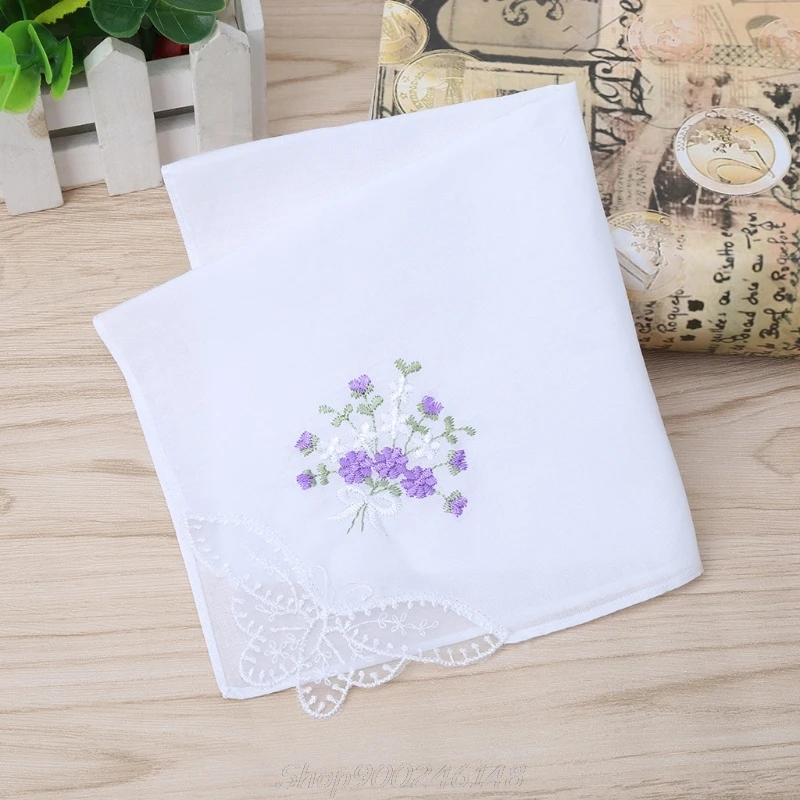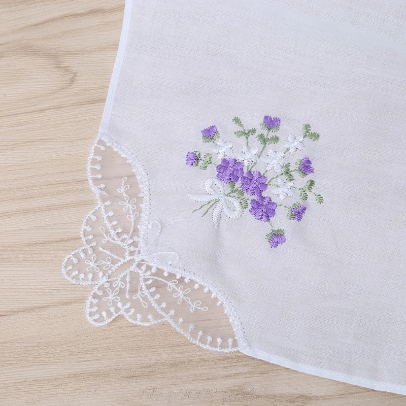 6 шт. винтажные хлопчатобумажные женские вышитые кружевные носовые платки женские носовой платок с цветочным узором