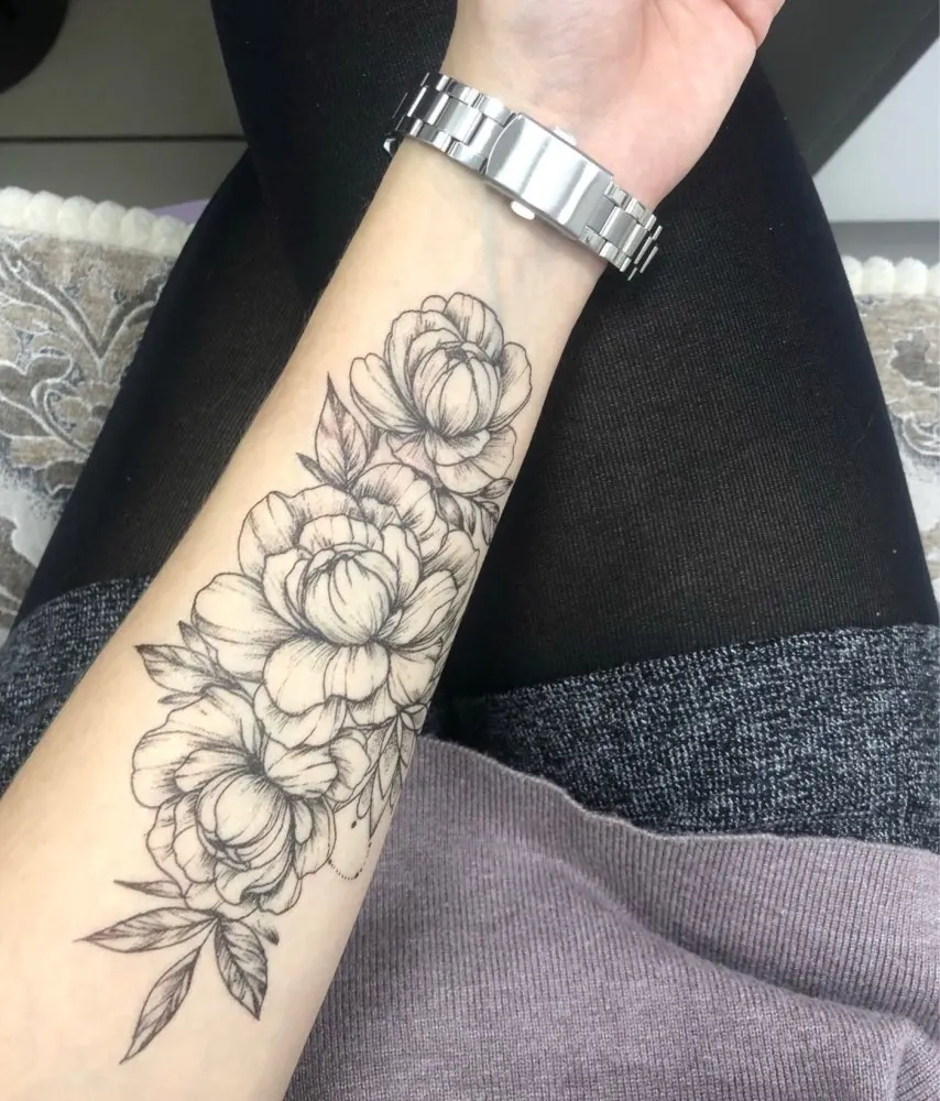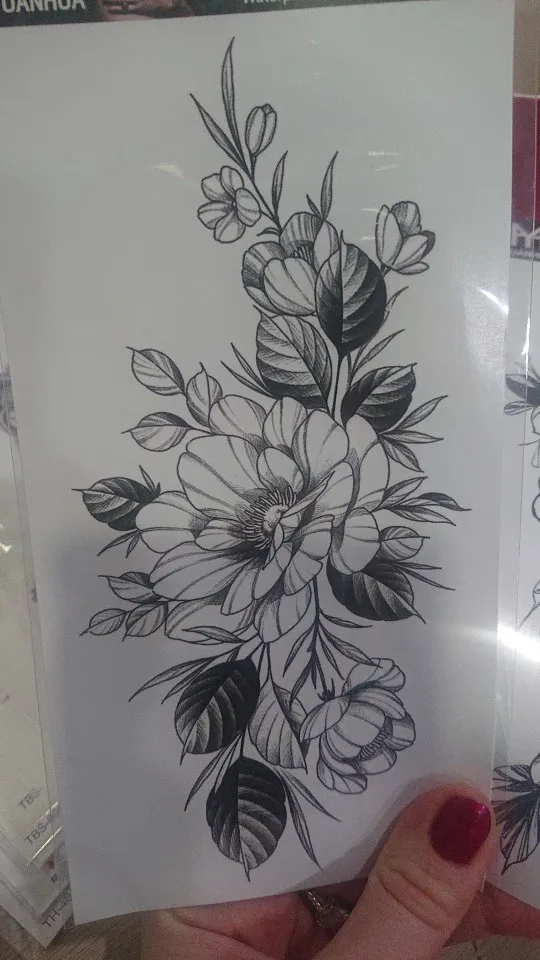 Тату-наклейка женская с цветами, розами, пионами