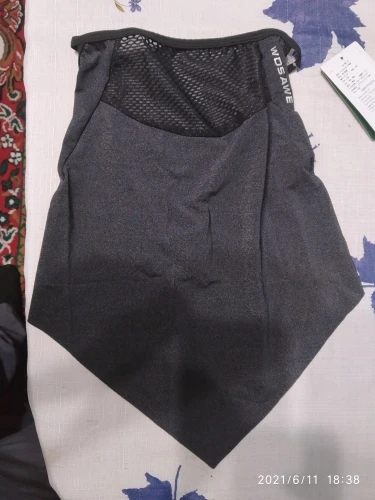 Доставка быстрая. Размер на среднее лицо. Материал-спандекс (погуглите,если не в курсе). Маска (центральная часть)-перфорирована, т.е. дышать хорошо. Под шелк, подойдет даже летом на велике в сезон мошкары, не жарко. Рекомендую.