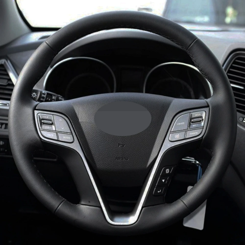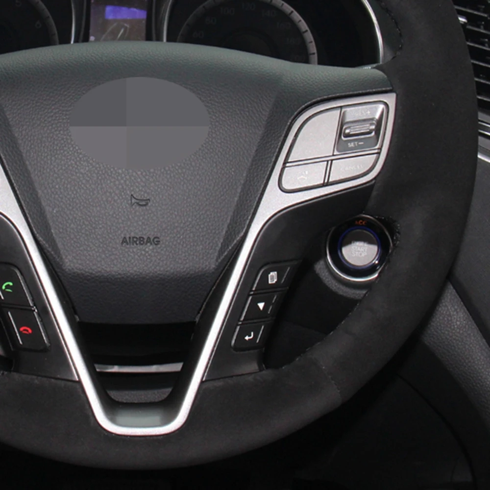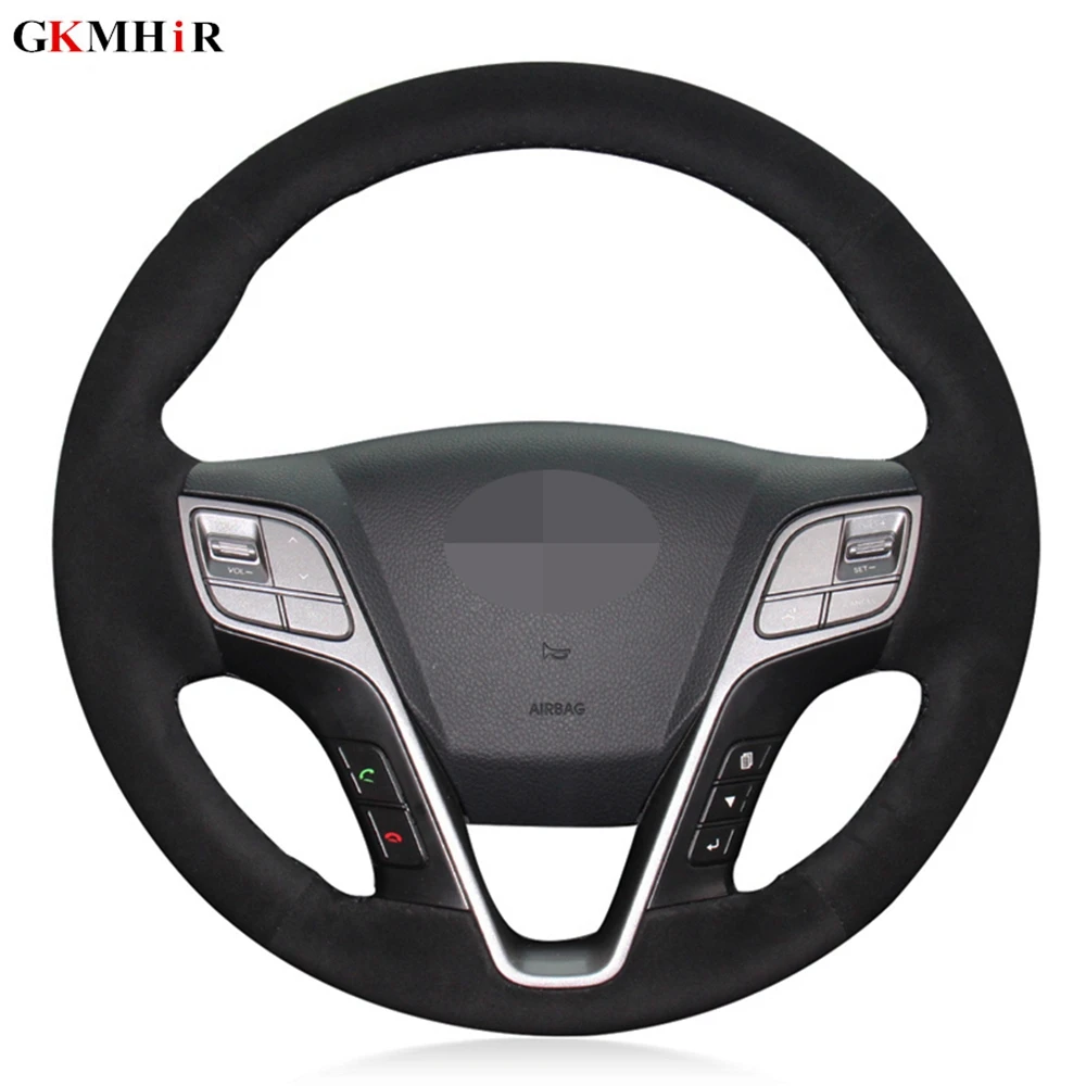 DIY ручной работы черного цвета из натуральной кожи и замши чехол рулевого колеса автомобиля для Hyundai Santa Fe 2013-2018 ix45 2013 2014 2015 2016