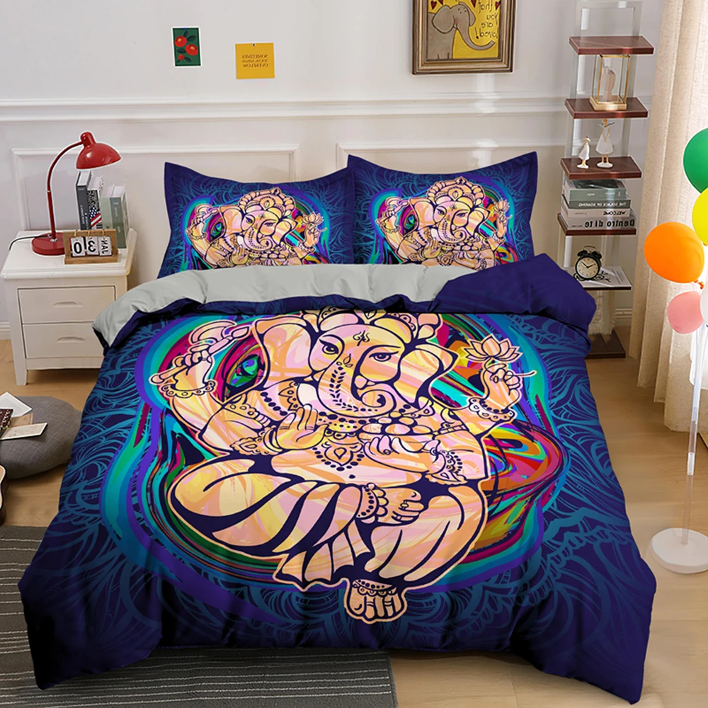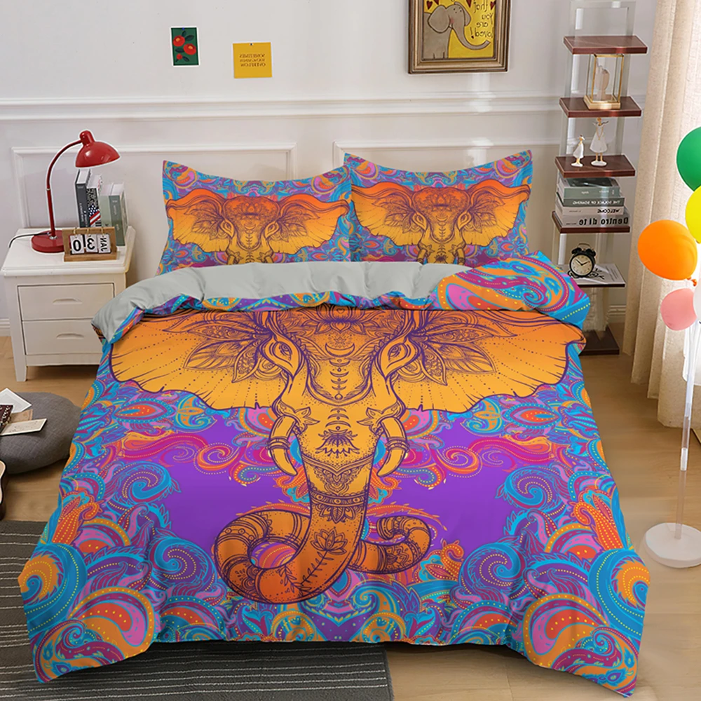 Комплект постельного белья этнический в стиле бохо с изображением слона, пододеяльник хиппи, психоделические цвета, королева, Кинг, богемный, индийский домашний текстиль