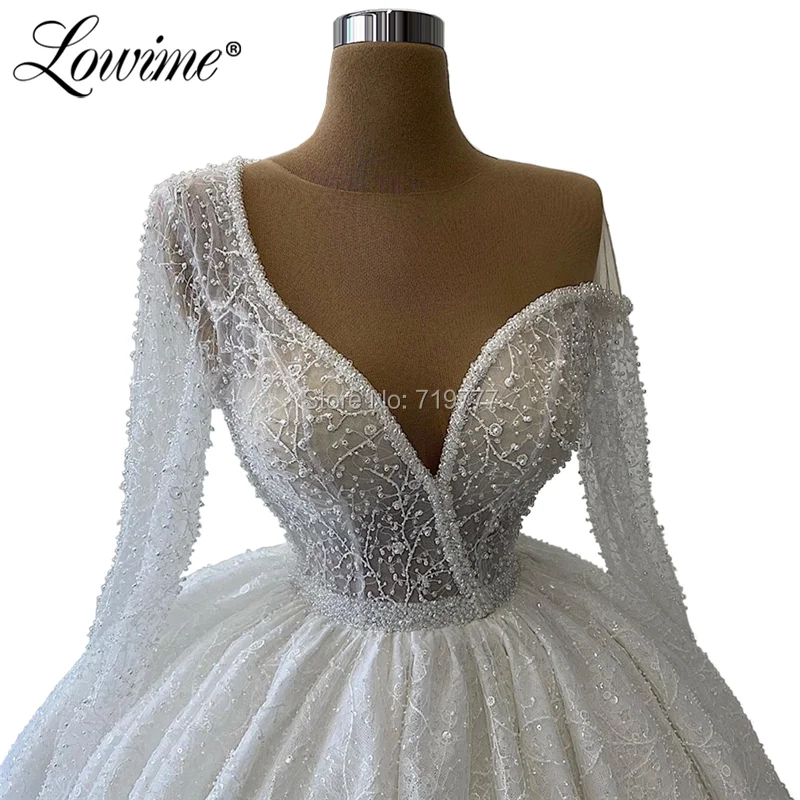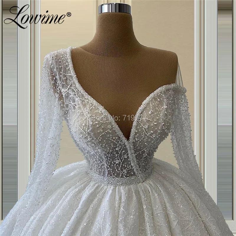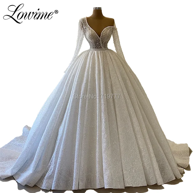 Белые свадебные платья на заказ de marie 2020 Пышные свадебные платья с бусинами в Дубае трапециевидной формы Vestidos De Novia с длинными рукавами для невесты