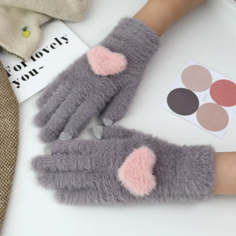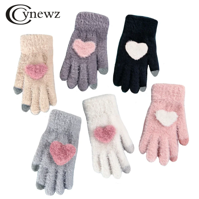 Зимние милые женские вязаные перчатки мягкие с сенсорным экраном кроличья шерсть сохраняет тепло для девочек розовые рукавицы женские перчатки