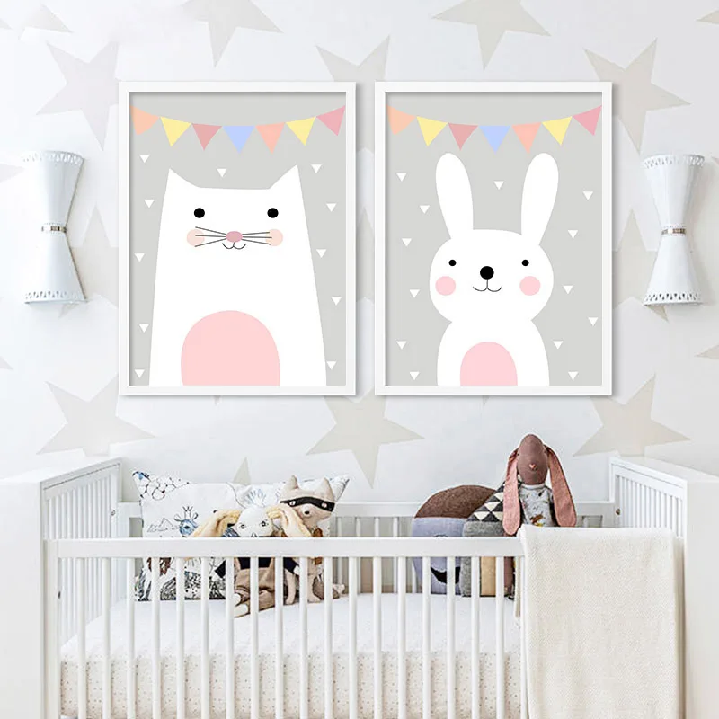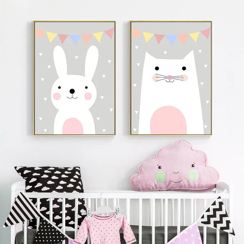 Постер на холсте в скандинавском стиле с изображением мультяшного к...