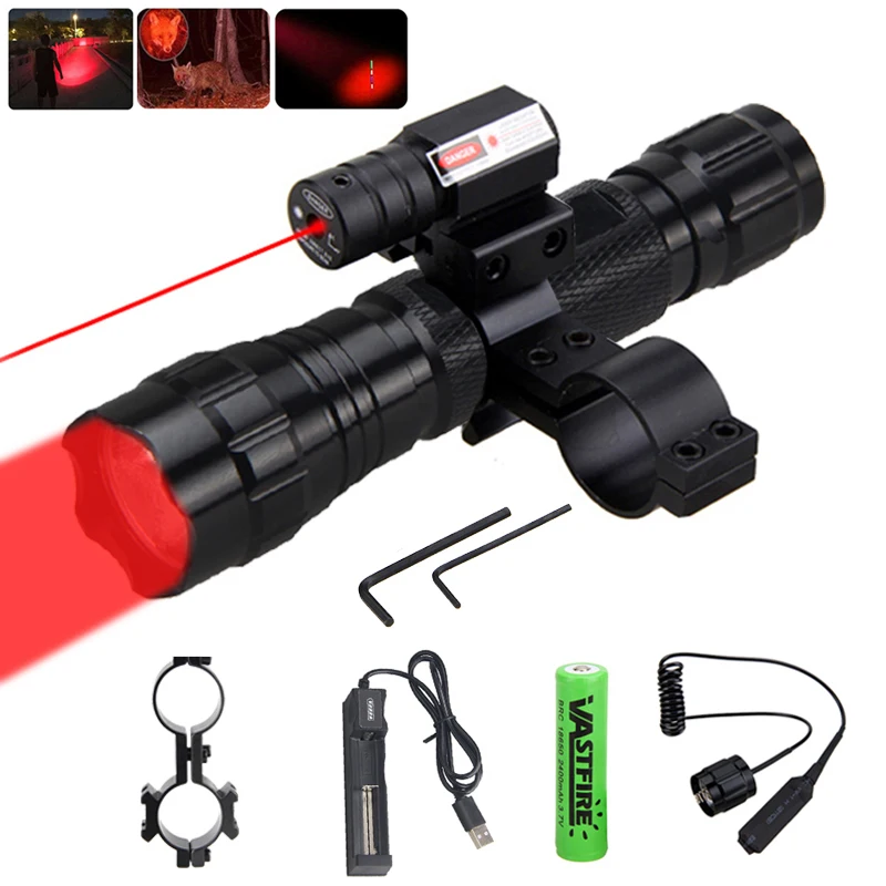 Охотничий светодиодный фонасветильник XM-L Q5 T6, 5000 люмен, тактическое оружие, лампа с красной лазерной точкой, прицел, крепление для прицела, дистанционное давление