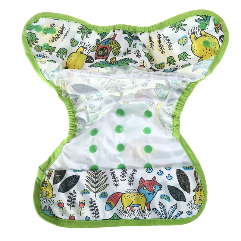 1: внутренняя часть чехла для подгузников изготовлена из высококачественного водонепроницаемого материала (PUL), а внешняя часть чехла для подгузников-дизайнерский принт 100% PUL. Закрылки PUL в верхней и нижней части подгузника удерживают тканевые подгузники на месте, но предотвращают впитывание, позволяя использовать подгузник много раз перед стиркой. Только мягкая сторона пуля соприкасается с кожей ребенка!