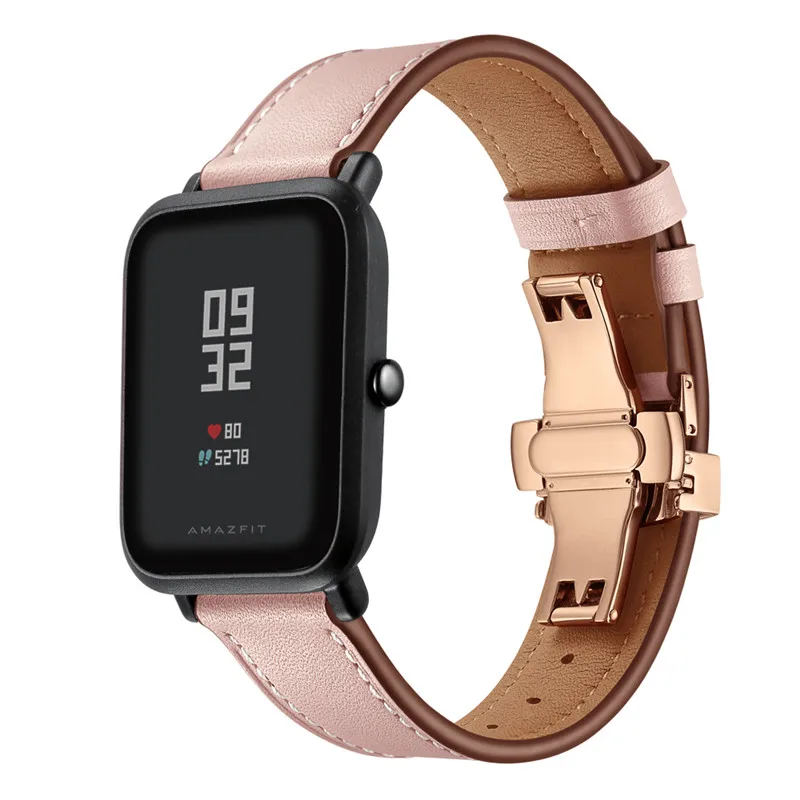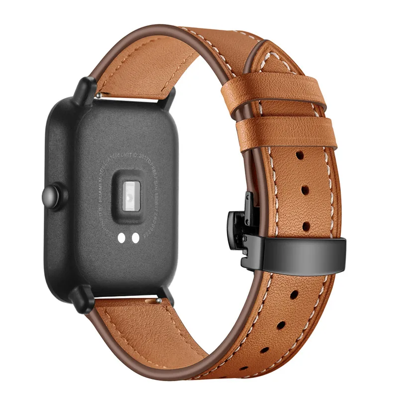 Кожаный ремешок с пряжкой-бабочкой 20 мм для Xiaomi Huami Amazfit G...