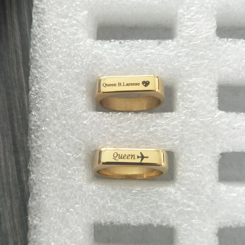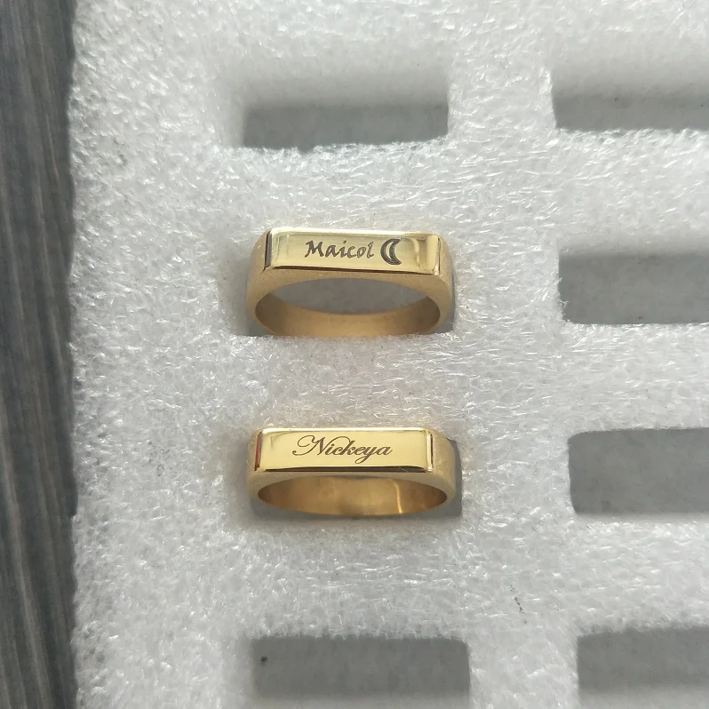 Индивидуальные Кольца с именем под заказ, ювелирные изделия из нержавеющей стали золотого цвета с квадратным символом, подарок на день рождения для женщин и мужчин