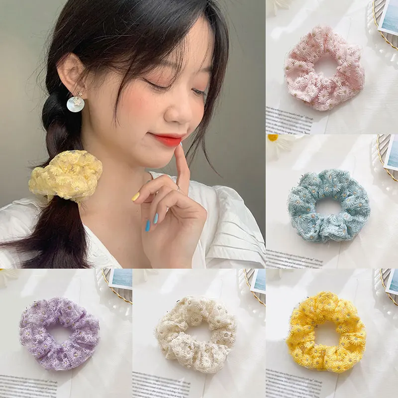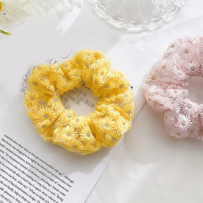 Резинка для волос женская, эластичная, кружевная, с вышивкой