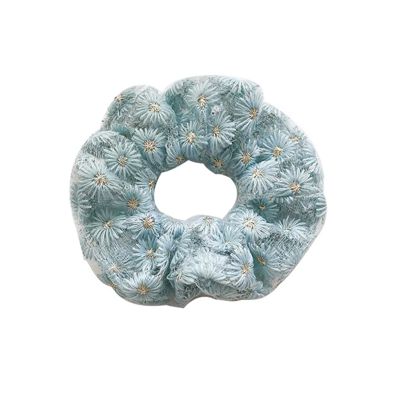 Резинка для волос женская, розово-голубая, с вышивкой и цветами