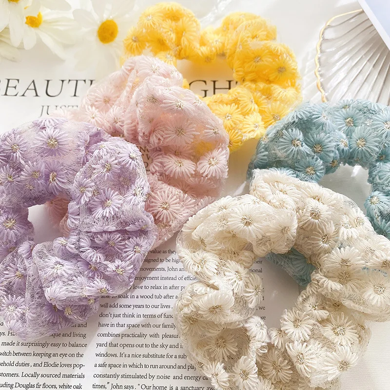 Сетчатые резинки из органзы, резинки для волос с цветочной вышивкой...