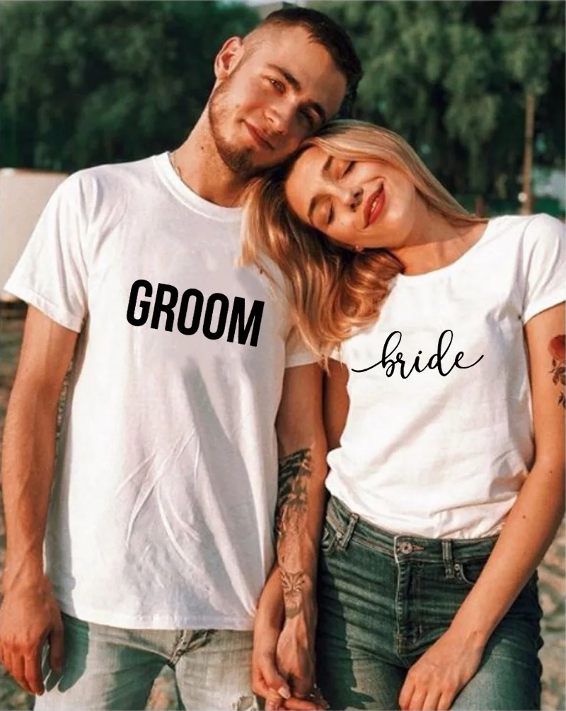 Белые футболки для пары жениха и невесты, Повседневная футболка для девичника, свадебные подходящие футболки, одежда с коротким рукавом в стиле Харадзюку