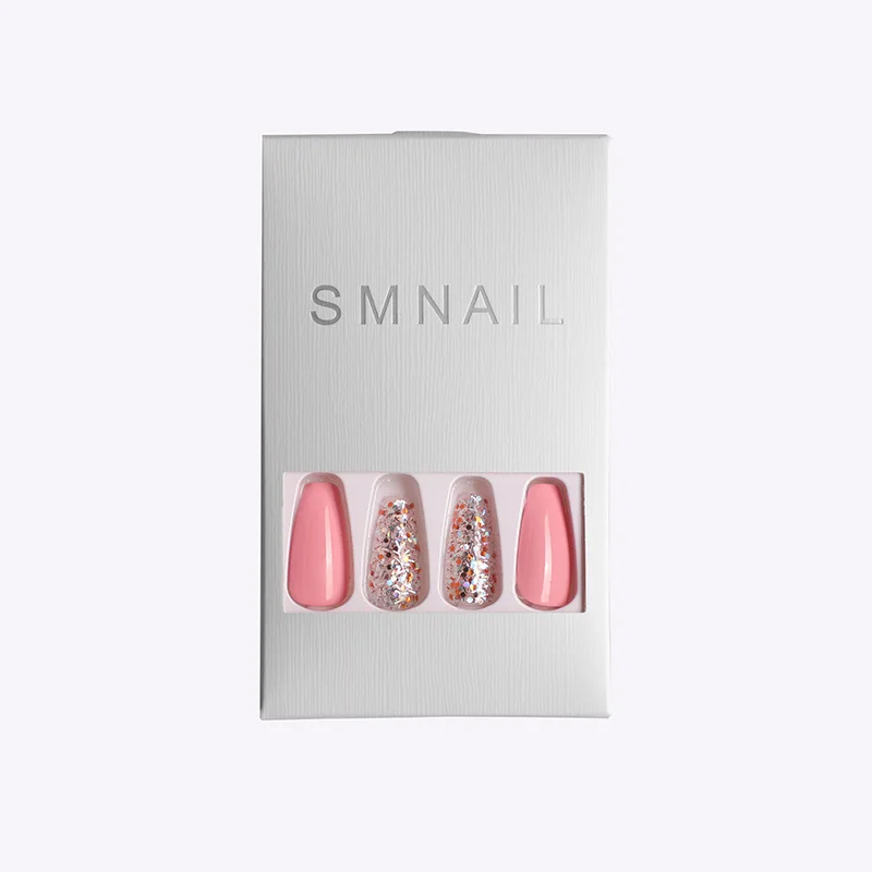 24 шт.корт. Розовые Длинные балетные накладные ногти серебряные блестящие украшения для ногтей наращивание ногтей жирный УФ сладкий голландский клей для ногтей Дизайн ногтей