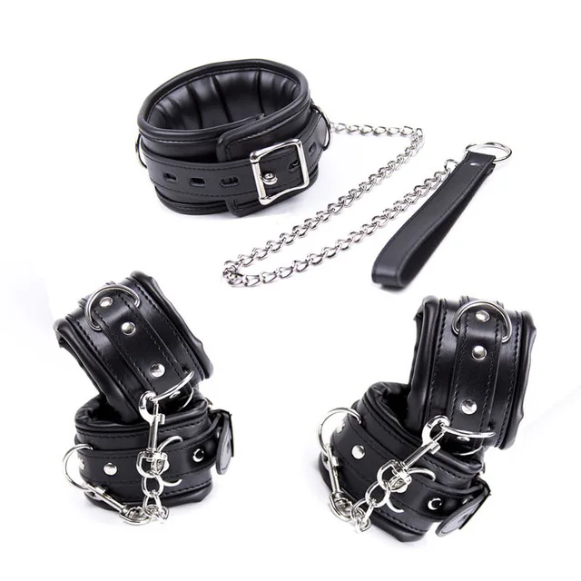 Кожаные, металлические, мягкие наручники для секса, наручники и ошейник, поводок для БДСМ, набор для бондажа, секс-игрушки для пар, Женский эротический товар
