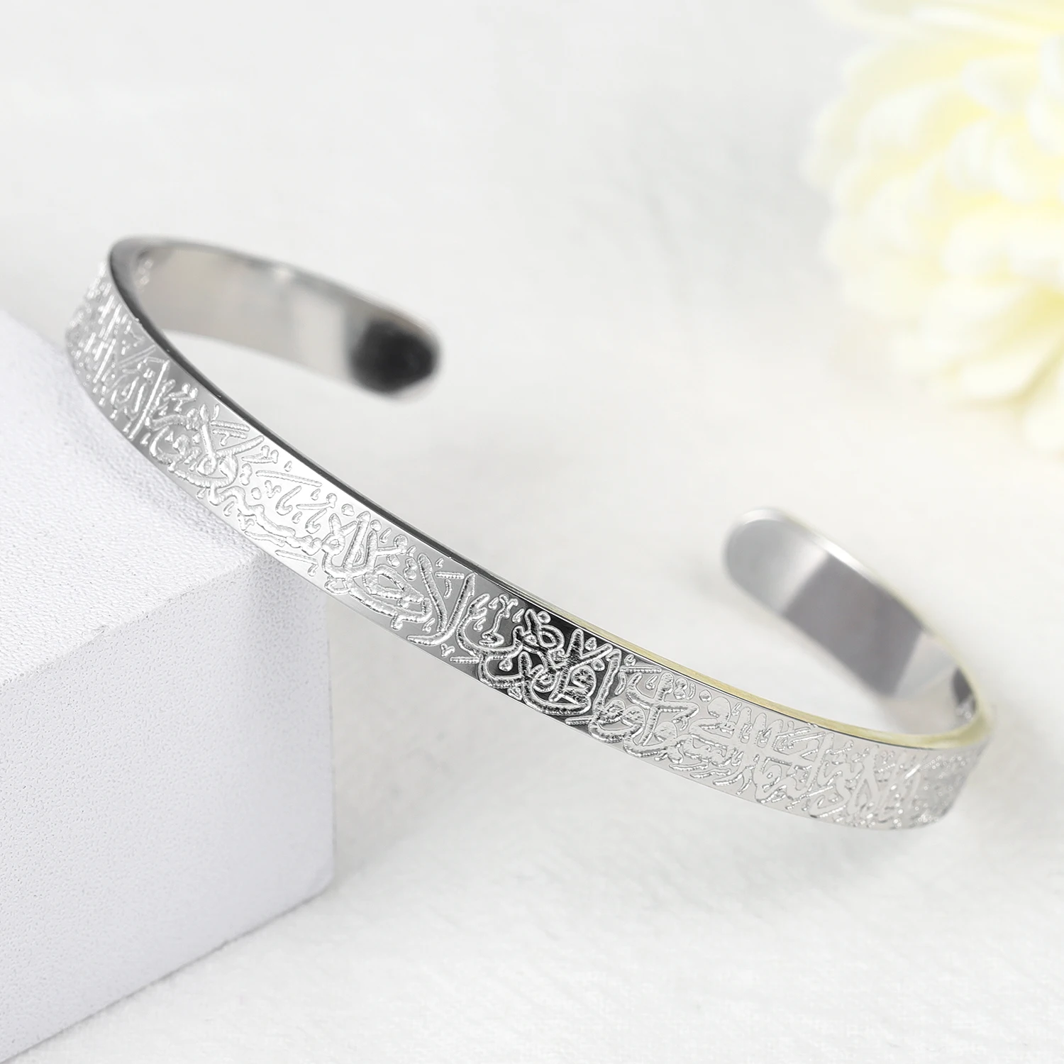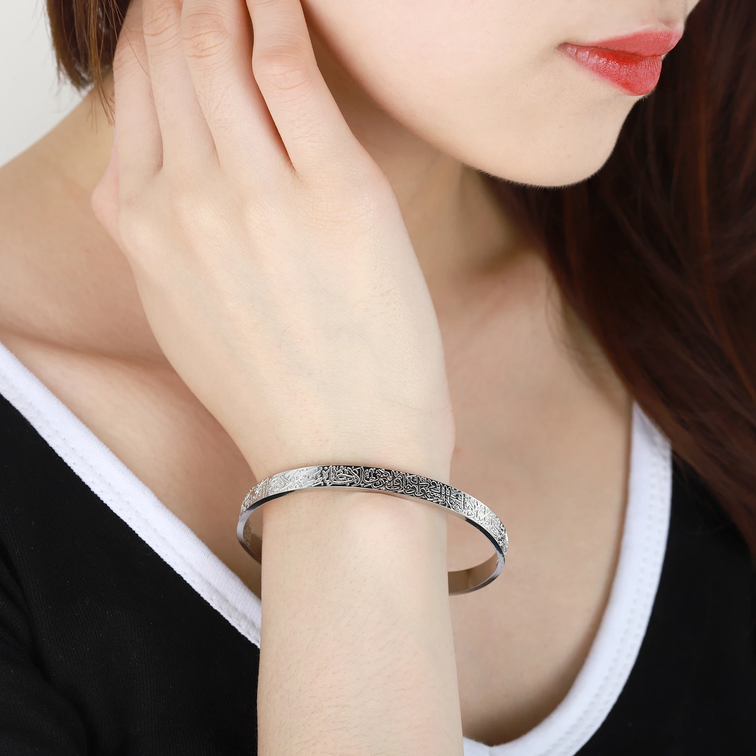 Пользовательский браслет с арабским именем AYATUL KURSI Манжета Персонализированный браслет Аллах Ислам Мусульманский Арабский браслет из нержавеющей стали с глубоким браслетом Мусульманские мужские украшения в подарок