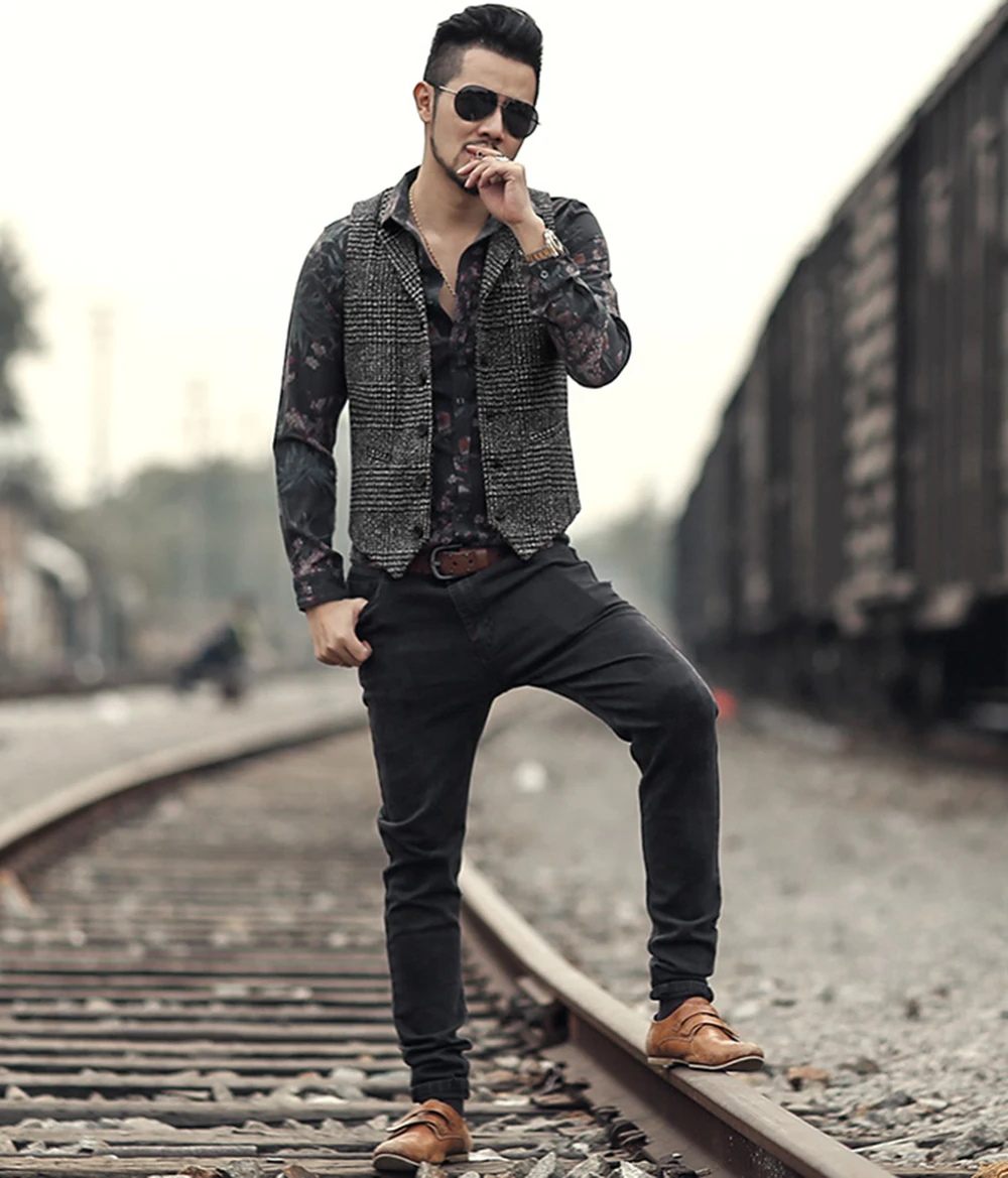Модные клетчатые мужские костюмы из 3 предметов, пиджак, жилет и бр...