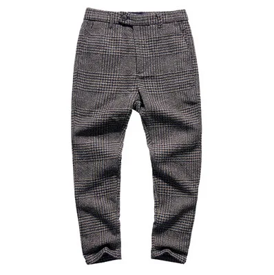 Новинка, мужские зимние клетчатые облегающие Стрейчевые шерстяные повседневные брюки в европейском стиле, мужские деловые брендовые модные длинные брюки