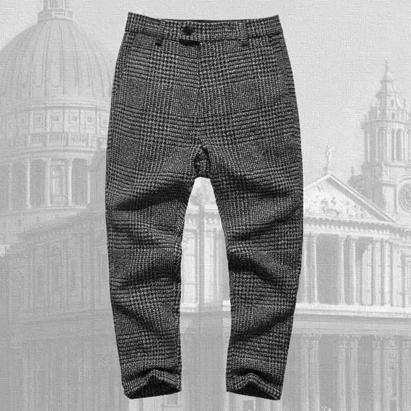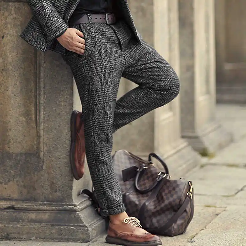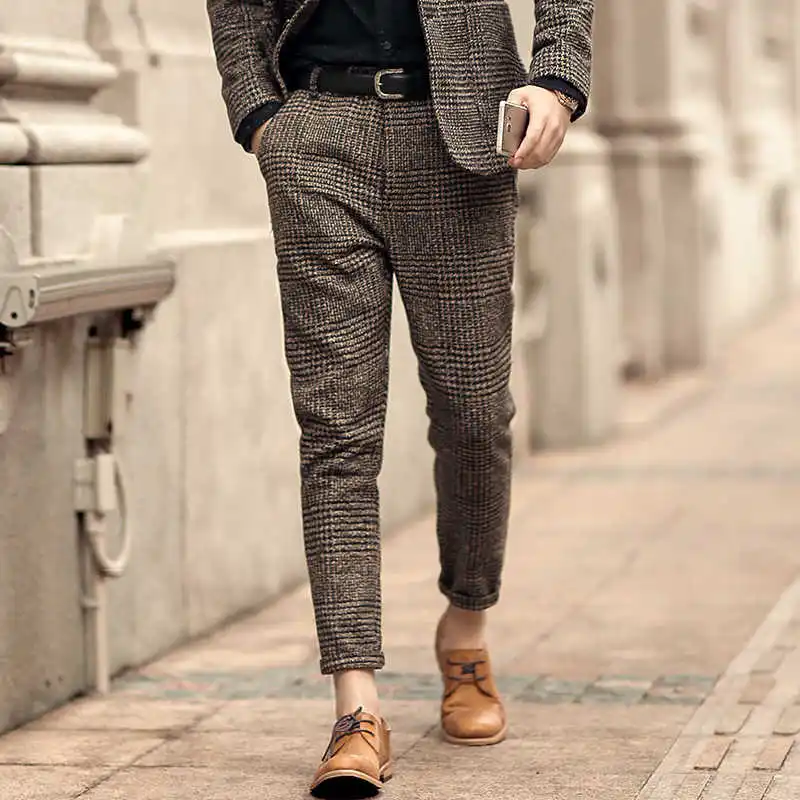 Классические мужские костюмные брюки, шерстяные твидовые облегающие...