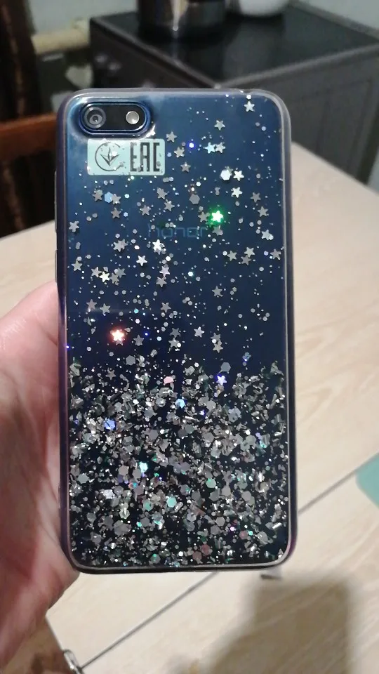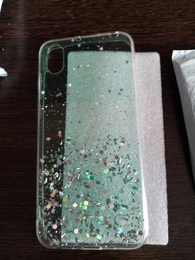 Заказ пришёл быстро, блёсток меньше чем на фото, и чехол плотно не прилегает к телефону