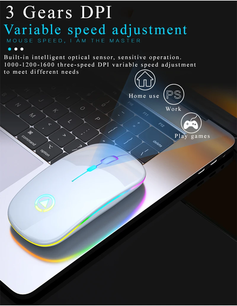 Беспроводная компьютерная мышь, бесшумная эргономичная перезаряжаемая мышь с RGB-подсветкой, USB-Мыши для ПК, ноутбука