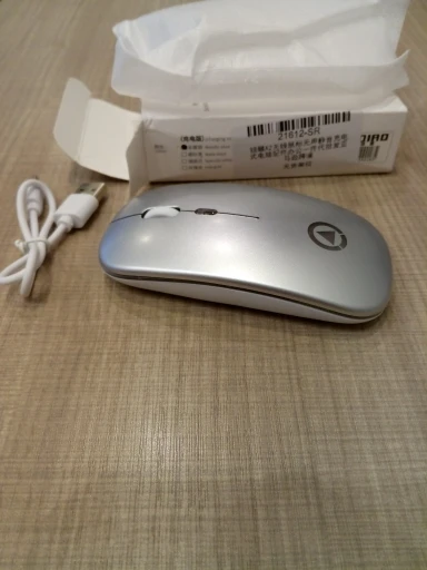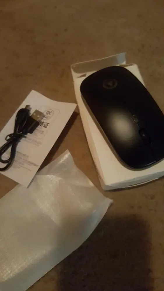 Пришло довольно быстро,коробка как на фото)),но мышка целая не поцарапанная,провод зарядки в комплекте,под зарядил и работаю,в руке приятно лежит цвета меняет,короче всё норм ,заказывайте!