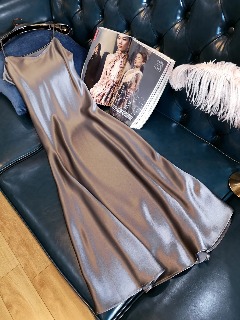 Женское атласное платье, Элегантное летнее платье на тонких бретелях, с V-образным вырезом, без рукавов, 2021, размера плюс, 13115