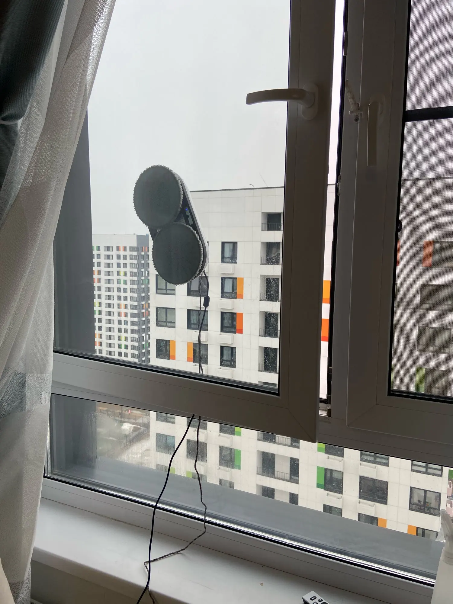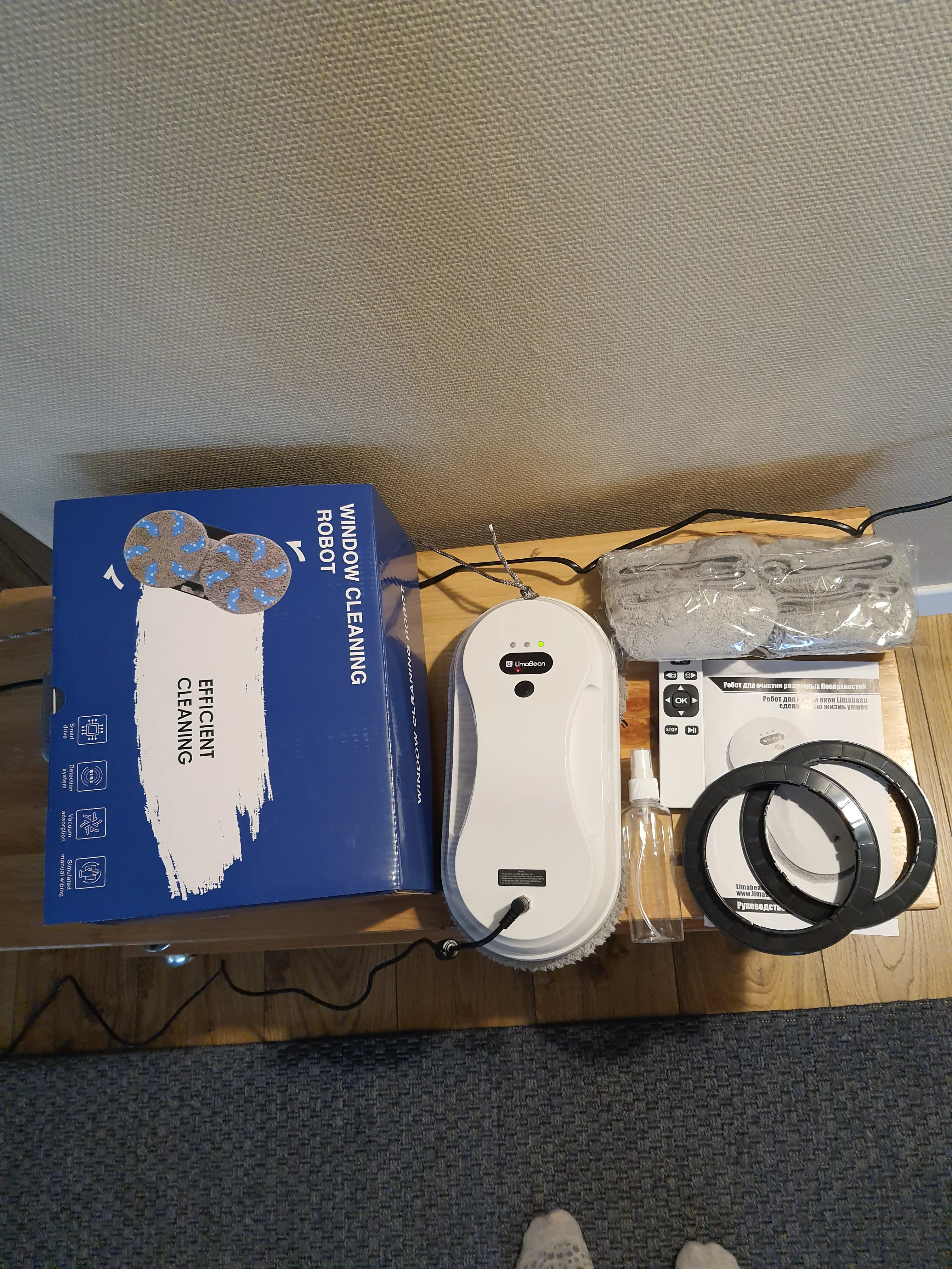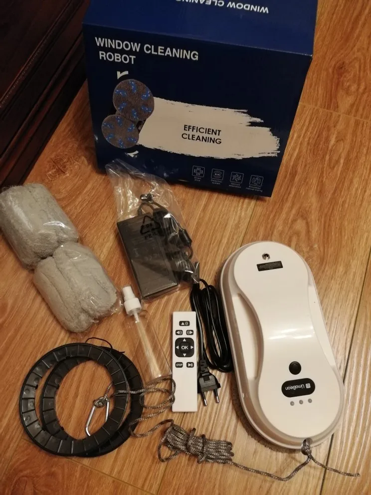 Получил быстро. Проверил на одном стекле, всё работает. Читал что шумно, я бы не сказал. Считаю хорошим помощником для пожилых людей, в купе с роботом пылесосом). Одна из 4х необходимых вещей, для дома, в нашем современном мире. (микроволновка, посудомойка, робот пылесос и мойщик окон)