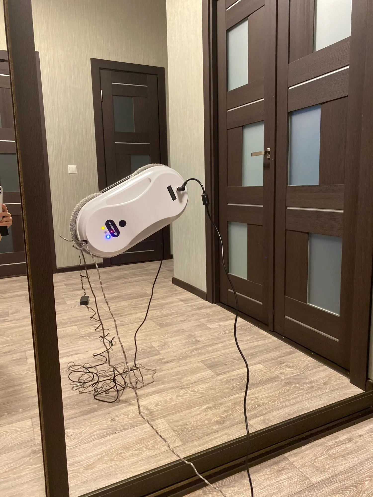 классный робот провели испытания на зеркале шкафа-купе! рекомендую! пёс только нервничает!