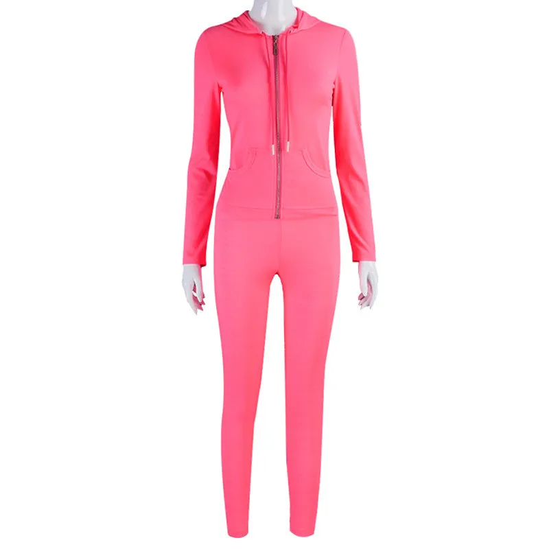 Женский спортивный костюм на молнии с длинным рукавом и капюшоном