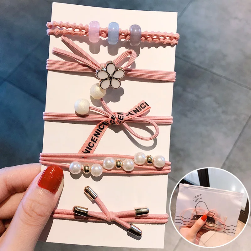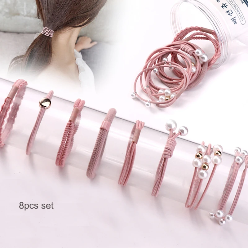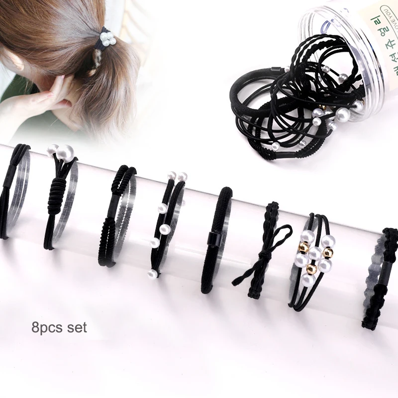 Модные повязки для девочек, корейские нейлоновые эластичные повязки для волос, держатель для хвоста, головные уборы, элегантные резиновые резинки с жемчугом, женские аксессуары для волос