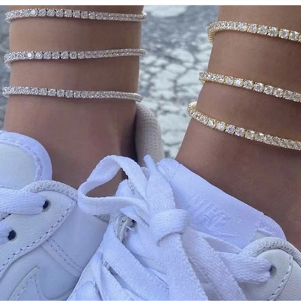 Женские теннисные браслеты на ногу, украшения для ног, большие стразы, для ночного клуба, роскошные, простые, однорядные, хрустальные браслеты на ногу