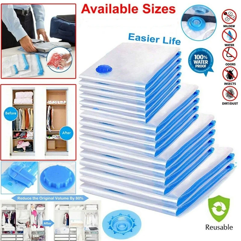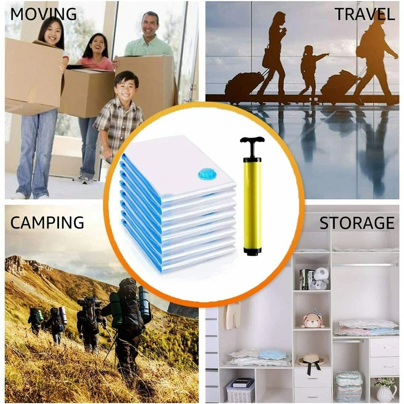 Многоразовый Вакуумный пакет для хранения одежды, органайзер для хранения пищевых продуктов, компактный вакуумный упаковщик, вакуумный ручной насос, сжатый