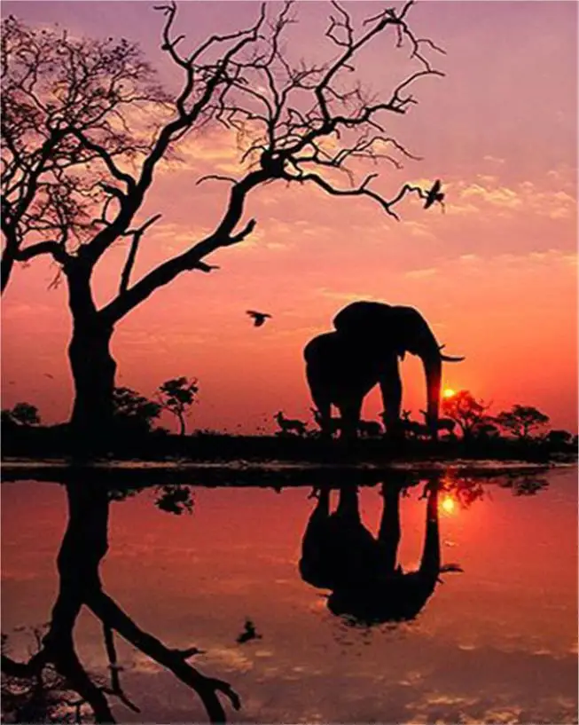 Алмазная 3D картина сделай сам, вышивка крестиком, африканский слон, рукоделие, полная мозаика, пейзаж заката
