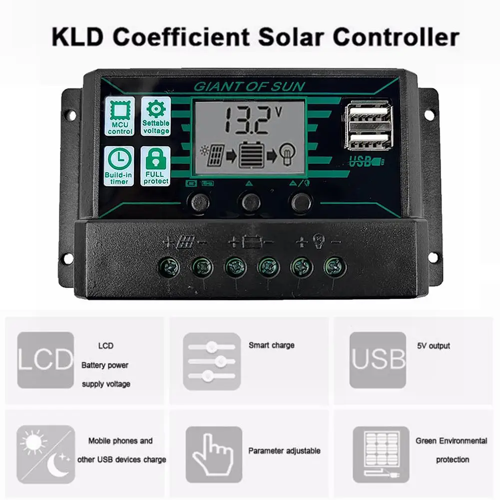 Контроллер заряда солнечной батареи 12 В24 В MPPTPWM 2-в-1, интеллектуальный регулятор заряда солнечной панели с двойным USB-портом и ЖК-дисплеем