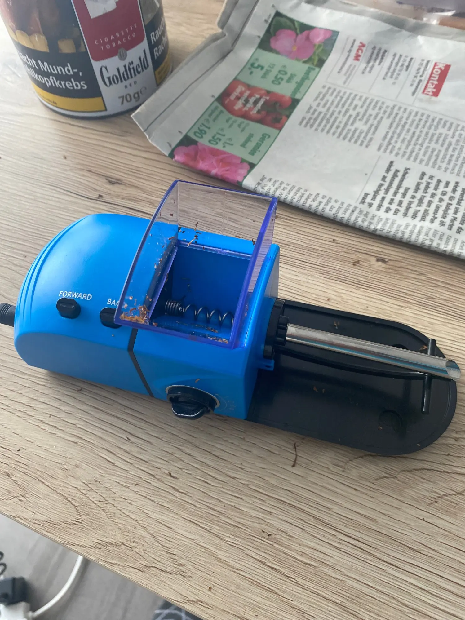 Доставили быстрее, чем обещали, на 1 "плотности" стандартную мешку с сигаретного завода мелет в труху и забивается. Самые "легкие" по набивке сигареты получаются мин. на 7-8 мин. курения (плотно). При этом 20 сиг. - чуть меньше 4-х мин. - на ручном - мин 10-12. Вроде норм, есть реверс.