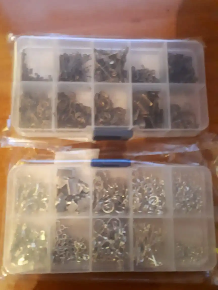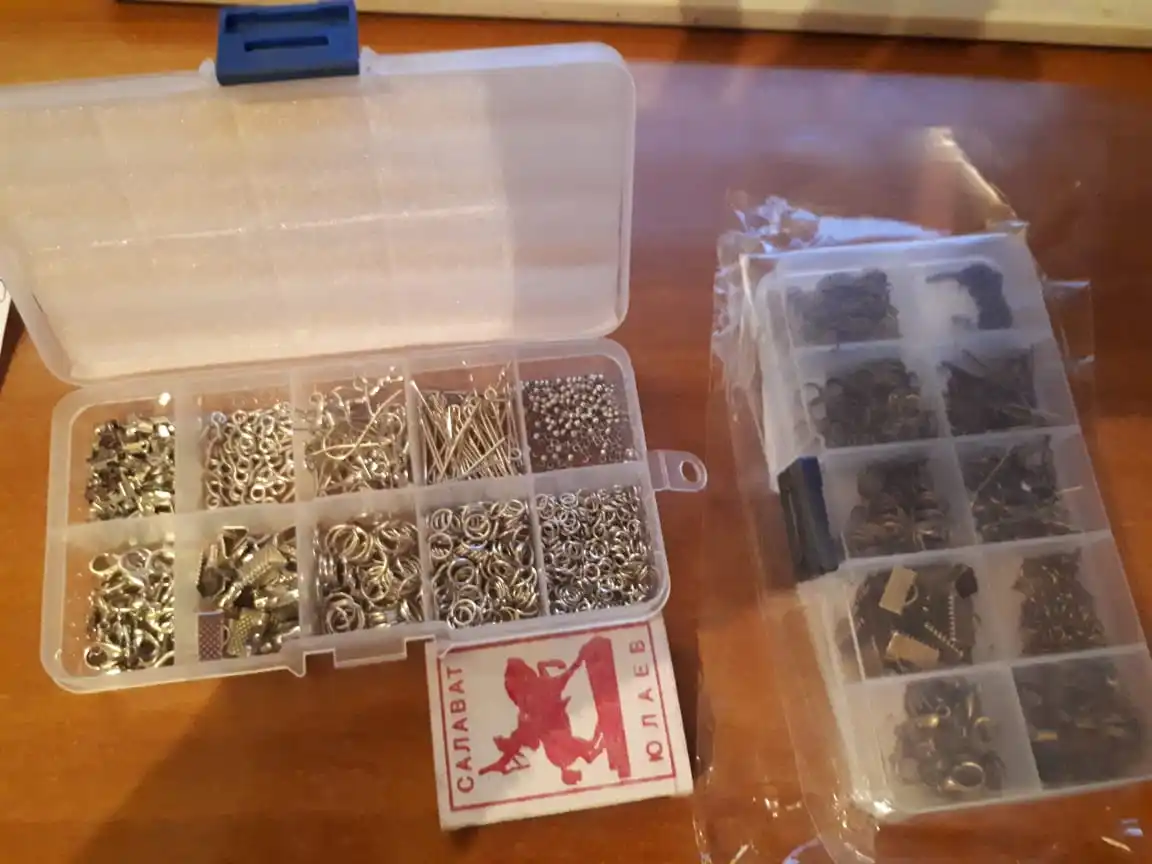 Набор хороший, понравился. Вместе с набором фурнитуры заказывала набор инструментов. С плоскогубцами (надеюсь, правильно назвала) работать удобно, ручки прорезинены. Приятно удивило, что вместо 20 швенз (основ под серёжки), положили 22. Благодаря форме швенз, их можно надевать без резиновых замочков, которые обычно идут в комплекте к серёжкам на али, но их советую сразу заказывать в пару к набору. Заказала 23.11, пришло 12.12
